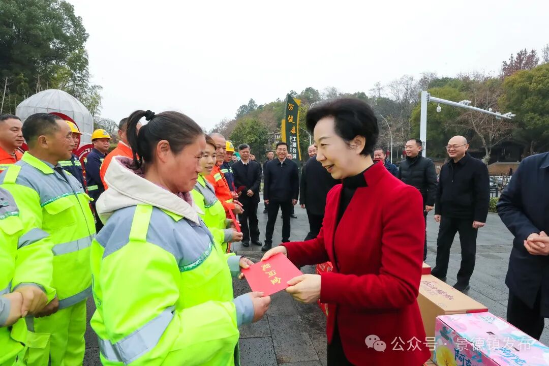 在枫树山路口,胡雪梅还亲切慰问了环卫工人和市政工人,对他们过去一年为创造优美、舒适、洁净的城市环境所付出的辛勤劳动表示衷心感谢。胡雪梅说,景德镇城乡环境面貌持续改善,离不开每一位“城市美容师”的默默奉献,希望大家在新的一年继续发扬吃苦耐劳、甘于奉献的优良传统,为进一步美化城市环境、提升城市形象作出更大贡献。