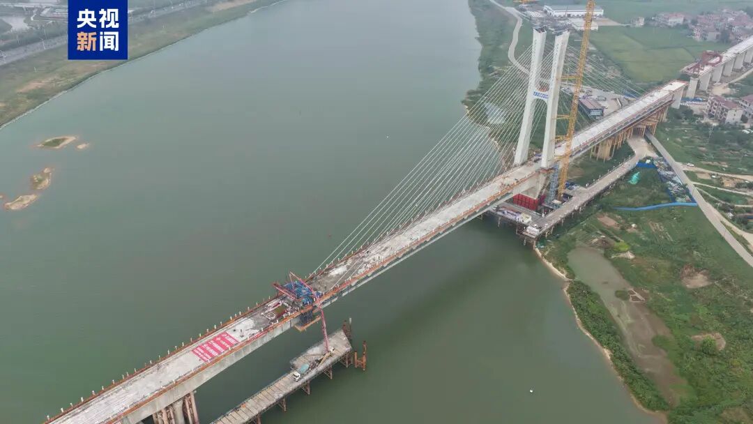 此次合龙的昌九高铁跨赣江南支主桥,为混凝土独塔斜拉桥,全长510米,主跨240米,塔高108米,是目前世界跨度最大的设计时速350公里独塔混凝土斜拉桥。